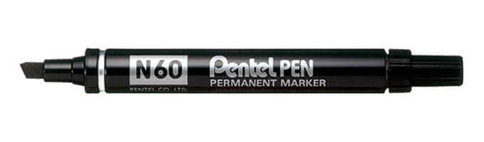 One of the most popular in the UK this permanent marker has a durable aluminium barrel. The chisel tip writes a variable 2.5 or 7mm line on many different surfaces including glass, plastic, cardboard, metal & wood. Its available with a choice of red, green, black or blue ink.