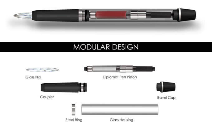 The WINKpen is constructed to be flexible & as user friendly as possible with the components fitting together easily making them easy to clean. The glass nib is double sided & can be used for all types of penmanship. Apparently glass eliminates the corrosion sometimes experienced with metal or ballpoint tips used in traditional pens whilst making it an easy to clean option. Now unless your entering into some type of medieval pact with the devil it’s unlikely that you’d want your blood to be used for anything other than running through the veins but as well as wine liquids like tea, juice or anything with a staining property can be put in this pen.