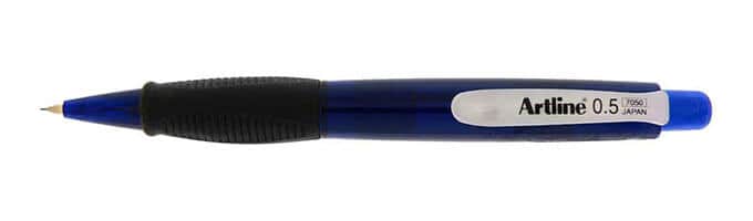 The Artline 7050 Mechanical Pencil 0.5 is available in 3 barrel colours, mine has a shiny blue body with a comfy rubberised triangular ergonomic grip section. The lead can be advanced & retracted with a simple push of the translucent button which also houses an eraser.