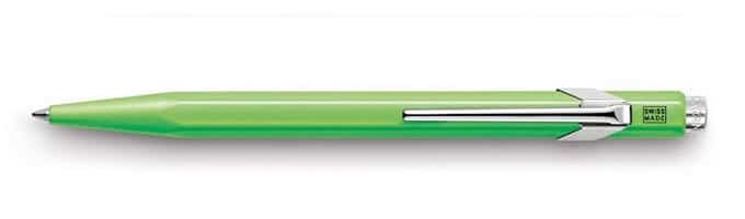 I am looking at the Caran d’Ache 849 Fluo to review today.  In a vibrant lime shade, this retractable ballpoint is undoubtedly eye-catching.