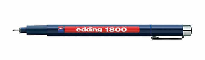 The edding 1800 profipen is a high-tech fibrepen. It looks like it’s ready for work, with a relatively slim blue barrel & a red panel displaying the logo, nothing complicated just practical & business like. This pen has a long tip with a metal-frame around it which provides protection & makes it ideal for use with stencils & templates as well as technical drawings.
