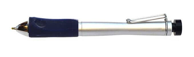 The Ez Grip pen has a specially designed grip with a wide ledge that requires 57% less writing pressure than traditional pens. It is recommended for use by people with arthritis, tendonitis, carpel tunnel, repetitive strain injuries and those who prefer a larger grip to hold on to.