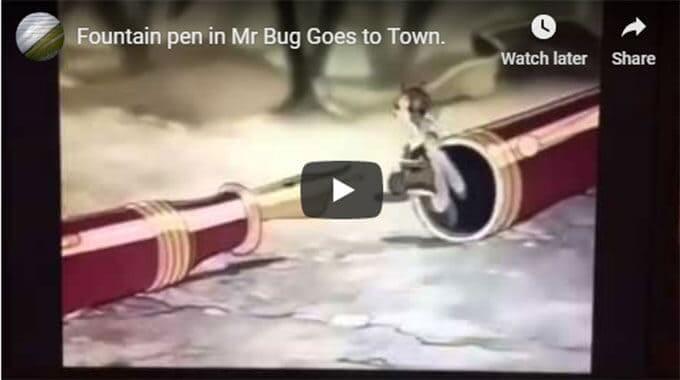 A member on the Badger & Blade forum posted a clip from a 1941 cartoon called “Mr. Bug Goes to Town.” In the clip, one of the bugs hides inside what looks like a red lacquer fountain pen. RaiderSix wants to know whether anyone recognizes the unidentified fountain pen.