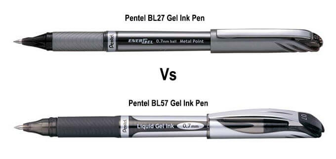 The Pentel EnerGel BL27 is the basic 0.7mm metal tip model, offering a slim aesthetically pleasing capped barrel in a pen that delivers dark, even lines. Its big brother is the Pentel EnerGel Deluxe BL57, which is everything the basic model is and then some.