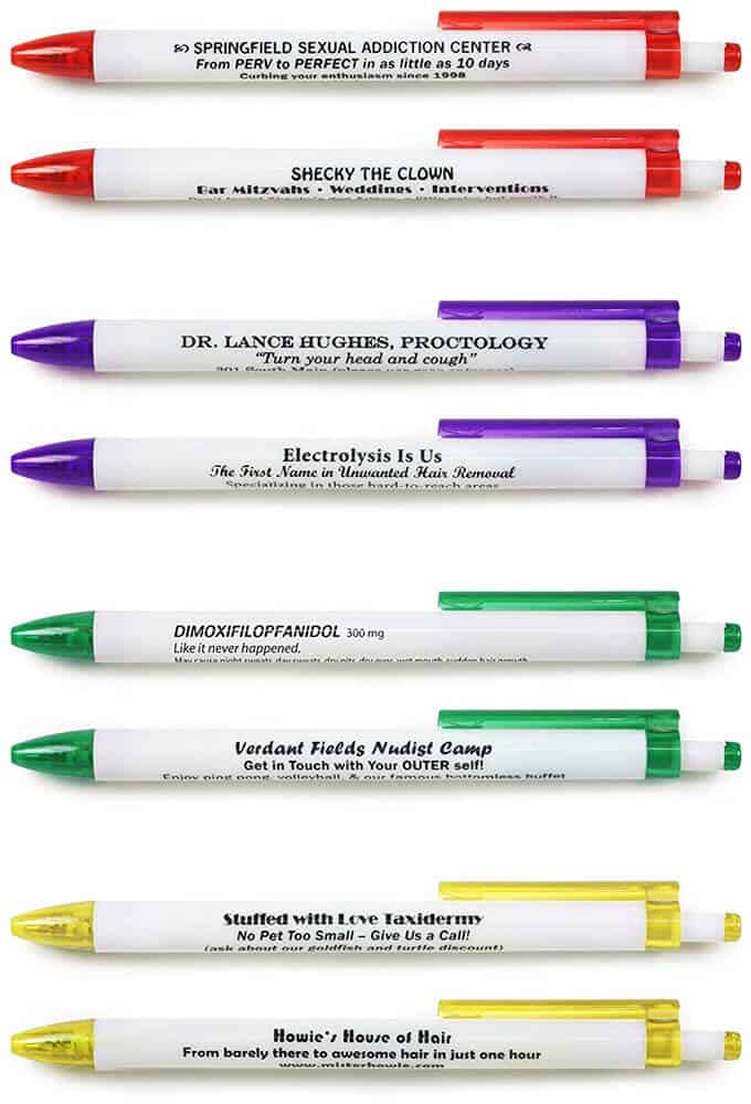 Now, we’ve found the perfect solution for those troublesome pen thieves. Check out Borrow My Pen? from Fred & Friends. It’s a pack of ballpoint pens with the kind of slogans printed on them that no one wants to be caught carrying.