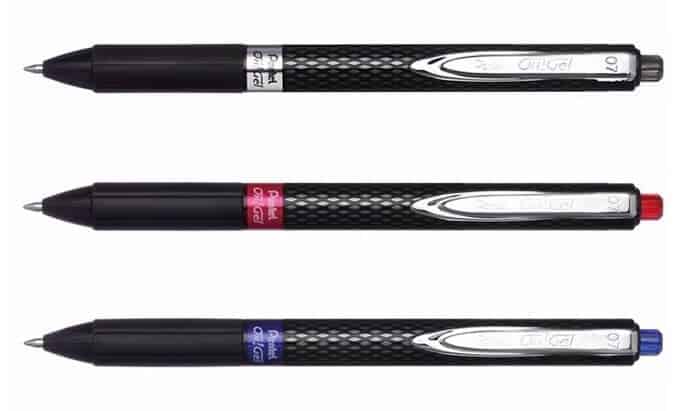 The appearance of this Pentel is not too bad, the black & grey hexagonal pattern on the barrel does get a second look & the chrome coloured pocket clip is sleek. The things that spoil it for me are the blue band separating the barrel from the grip section & the push button (also blue), had the entire pen been black it would look more expensive. I do appreciate that this is colour coded with the ink.