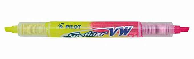 I get to see a variety of different writing instruments.The Pilot Spotliter VW is a highlighter with a difference, I look at it as a two for the price of one option because it contains pink & yellow liquid ink in one pen.