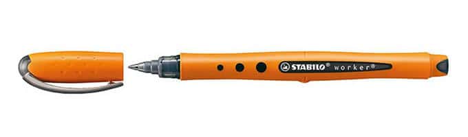 Rollerballs made an appearance in 1963 & have liquid or gel ink. This Stabilo Worker Medium has a 0.5 tip & has what its makers call progressive liquid ink technology.