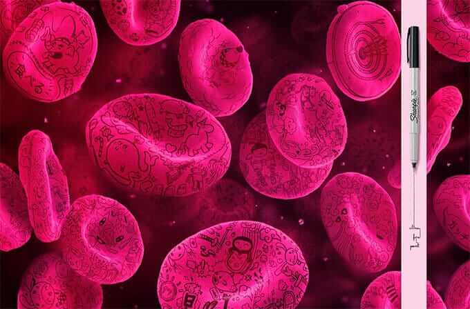 Sharpie has a brilliant new ad campaign highlighting its Ultra Fine Point permanent markers by displaying tiny artwork on what looks like red blood and bacteria cells.