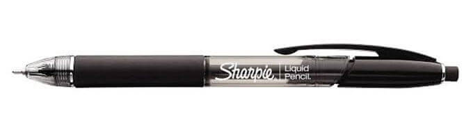 The Sharpie Liquid Pencil produces a line comparable to the traditional No.2 or HB and writes smoothly like a pen but is erasable for up to three days before becoming more permanent. As the graphite is liquid, there is no lead to break so no need to sharpen and the writing will not smudge or smear and you also cant get lead poisoning.
