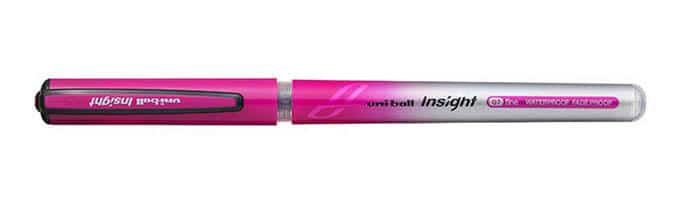 The pen in hand is a Uni-ball Insight UB-211 Rollerball in wine, the 0.7mm tip writes a fine 0.5mm line & its available in 6 colourful shades.