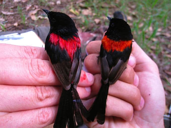So, instead of giving them their own reality show, ornithologists from Cornell University tried a simple test. They painted the feathers on the orange birds with a PrismaColor Carmine Red marker (a Newell Rubbermaid cousin to Sharpies).