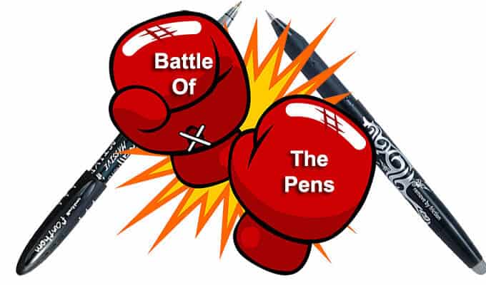 he Pilot Frixion is the undisputed king of erasable pens but now Uni-Ball has thrown down the gauntlet with its Uni-Ball Fanthom erasable gel pen. We have tested both pens in today’s battle of the pens to try and find out which is better.