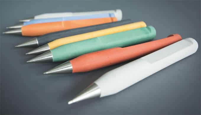 Another concrete pen from 22 Design Studio in Taiwan has a really interesting concept – there are ridges on the concrete body that wear away under the pressure of your fingers so that it eventually becomes molded to your hand. Use it enough, and you end up with a pen custom-fit for you.