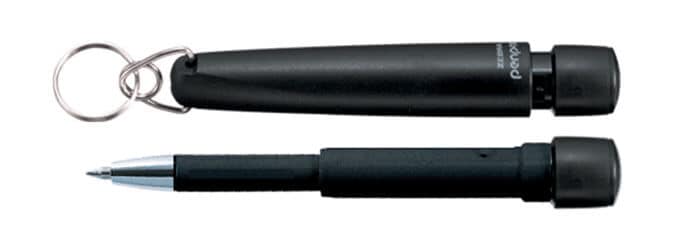 This little invention is a neat ballpoint pen with a mini key ring attached.